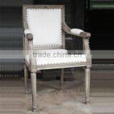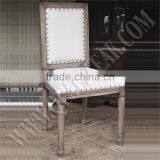 Antique French Crossback Teak Dining Chairs With Distressed Finish