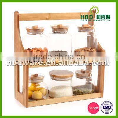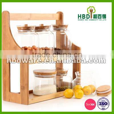 Home > Products > Canister with bamboo or wooden lid > Air Tight Glass Jar Set With Silicone Bamboo Lid