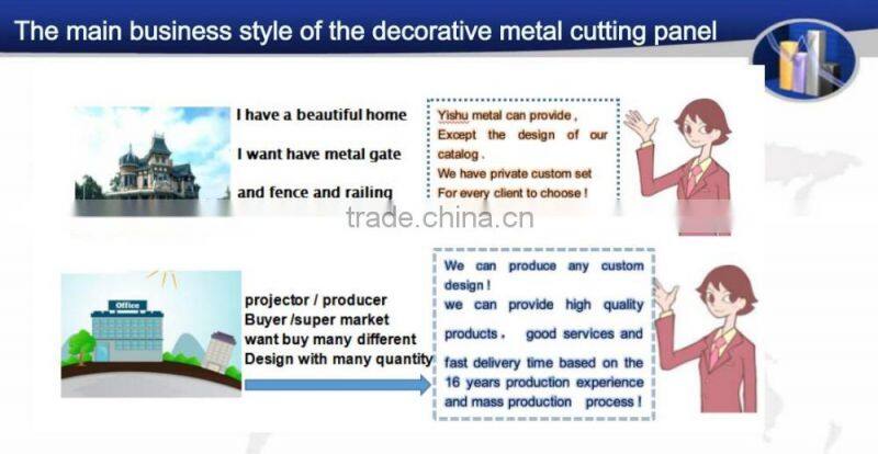 Yishu Metal company obtained SGS certification, specialized in production and sales : iron gate, iron door, iron fence, aluminum gate, aluminum handrail, iron window grill, iron stair/baluster ,railing of balcony and casting aluminum panel. Our products are exported to all over the world.