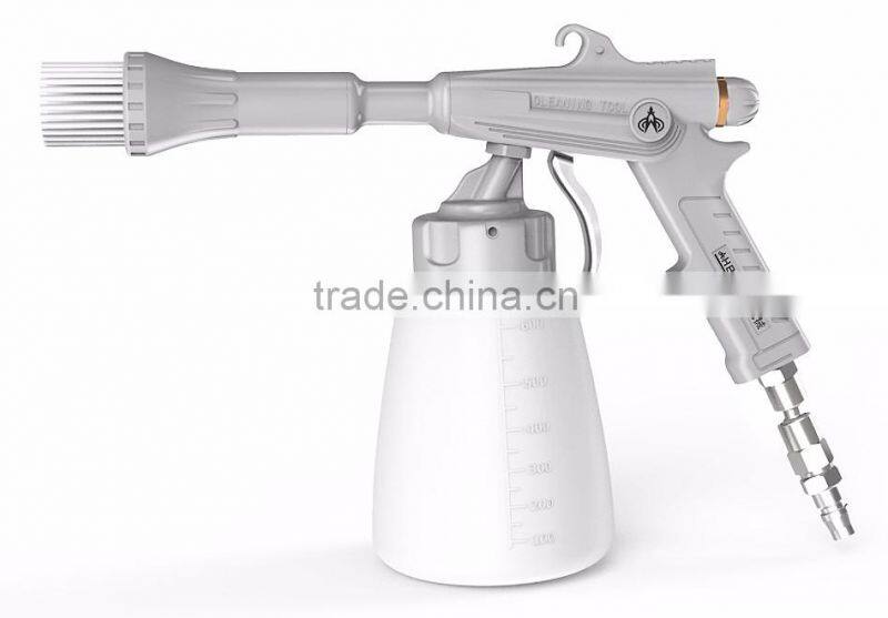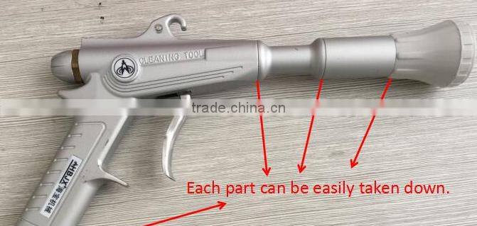 Our new cleaning gun have a special design ,Gun trigger have 2 way switch ,when open trigger ,first have air and second have soup that have better atomization effect. Close trigger gun ,first close soup and second close air .