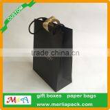 Matte Black Shopping Bag Paper Gift Sales Tote Bags With Grosgrain Ribbon Bags