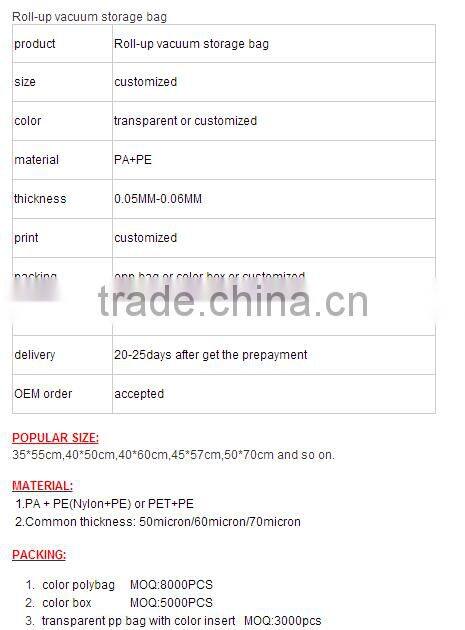 Compressed 75% Space OEM Hand Roll Vacuum Compression Bag