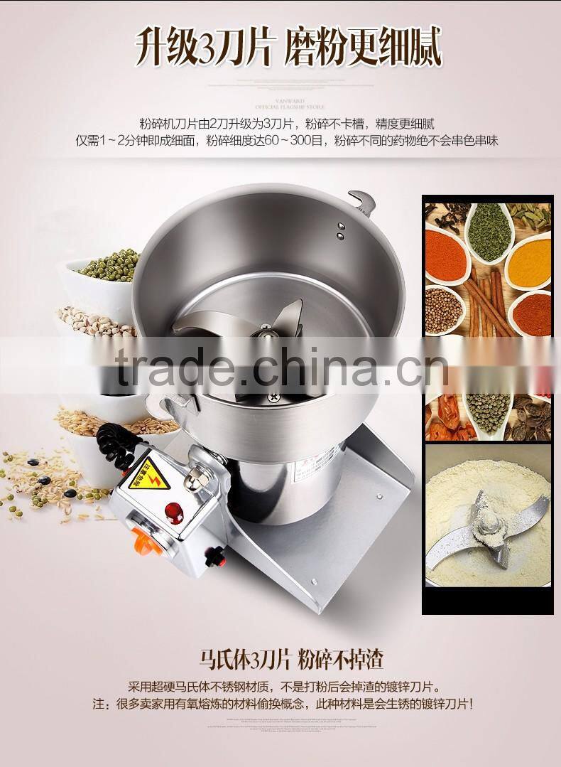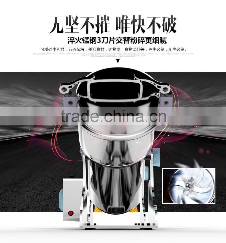 The high-speed multifunction grinder features is adopted latest technology, with the following features: fine structure, low noise, small size, no vibration, compact appearance and easy operation.It can grind all kinds of corns and grains into fine powder at 50-300 mesh. It is widely used in families, clinic, hospital, pharmacy and institute laboratories.