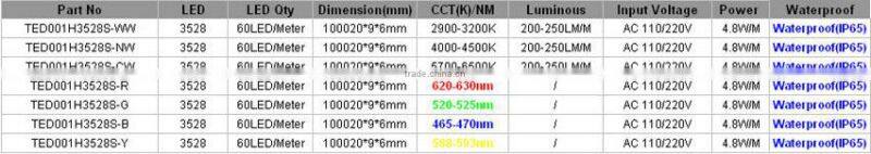 Item: Waterproof Outdoor Use SMD 3528 AC Voltage 220v Led Strip