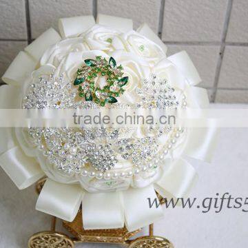Graceful wedding bouquet with Rhinestones Satin Silk Ribbons Pearls Jewels Bridal Bouquet Bridesmaid Bouquet