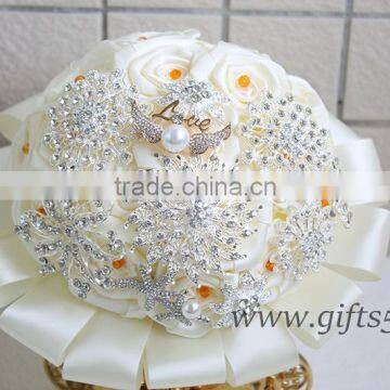 3.Material: Satin roses,ribbon, rhinestones, brooches, pearls,beads,Imitation diamond,plastic, foams.....