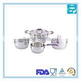7Pieces Popular Silicone Covered Handle Mirror Finish Stainless Steel Cookware