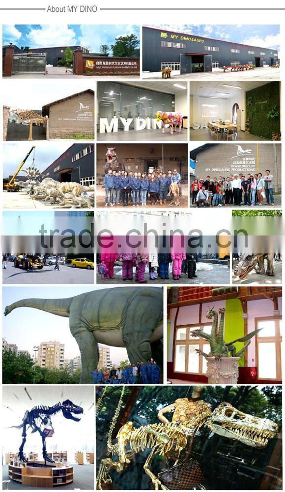 Featured with high lifelike appearance, flexible movements, multi-function, vivid sounds, realistic color, high quality and reasonable price, our products are applicable to amusement park, adventure park, Jurassic theme park, Natural history
