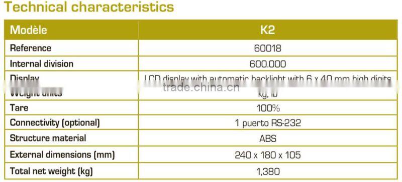 Hot Sales K2 Platform Scale Indicator With OIML-C3 Loadcells