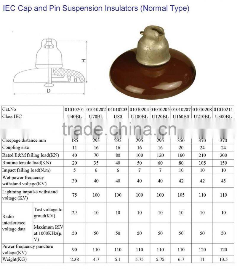 We can supply cap and pin type insulators according to IEC standard, voltage up to 500kV, mechnical strength up to 300kN.