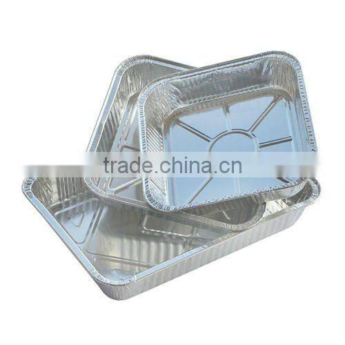 4. Use of Aluminum Container: Aluminum foil containers serve a number of markets. A wide range of container designs are available in the retail market, such as baking pans, roasting pans, muffin pans, pizza pans, cookie sheets, carryout containers, etc. ,Generally, these containers also come in a variety of sizes,. Small cake foil tray used for bakery, aluminum BBQ trays, foil pans, disposable fast food container or take away packaging...etc. that's all depending on the specific consumer needs.