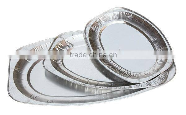 1. Materials: Aluminum Foil, good glossy environment-friendly and recyclability 2.Various dimensions and shapes available, including rectangle, oblong and square with hemmed and curl edge 3.Packing: Hot Shrink Packing ,Bulk Packing ,Display Box Packing 4. High temperature sterilization 5. Make the molds as customers’ requirements |