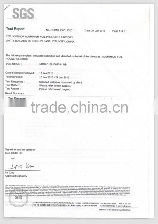 Our factory specialized in manufacturing Aluminum foil container(Lids),Household aluminum foil rolls,and Pop-up foil sheets for food packing,under the strictest quality control,our products have got the certificates of:FDA,CE,SGS,ISO and AIB Audit!