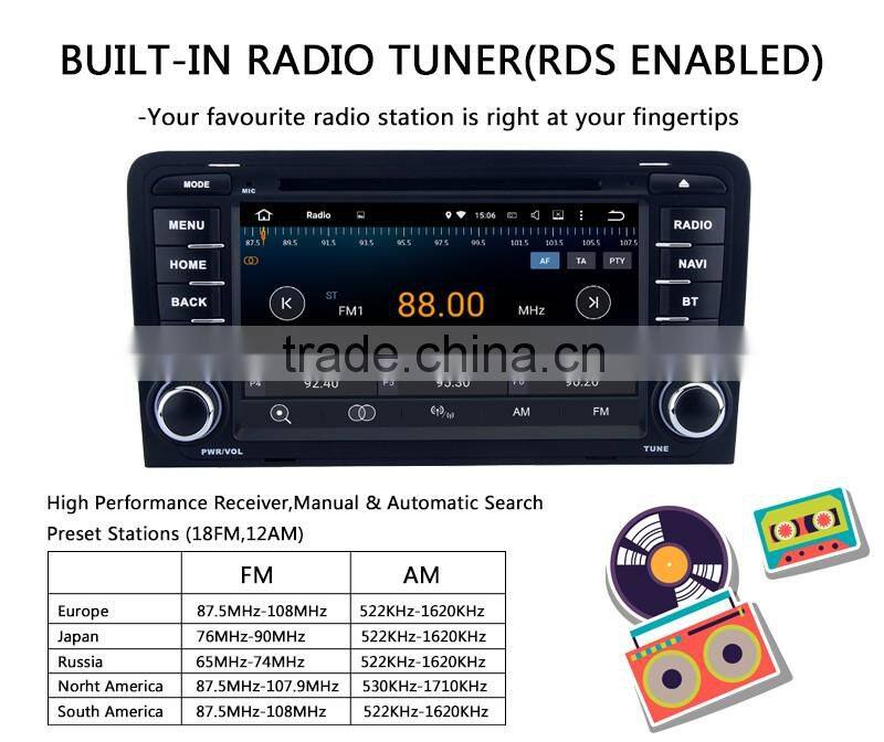 Android 5.1.1 Car PC GPS for Audi A3 S3 2003-2011 3G Wifi BT SD Navigation Radio RDS Stereo System