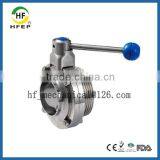 DN40 Thread OD 38mm Stainless Steel 304 Sanitary Butterfly Valve