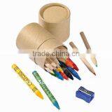 1.12pcs 7"color pencils,4pcs HB pencil,1piece eraser,1pc wooden rule,and 1pc wooden sharpener packed into paper tube.