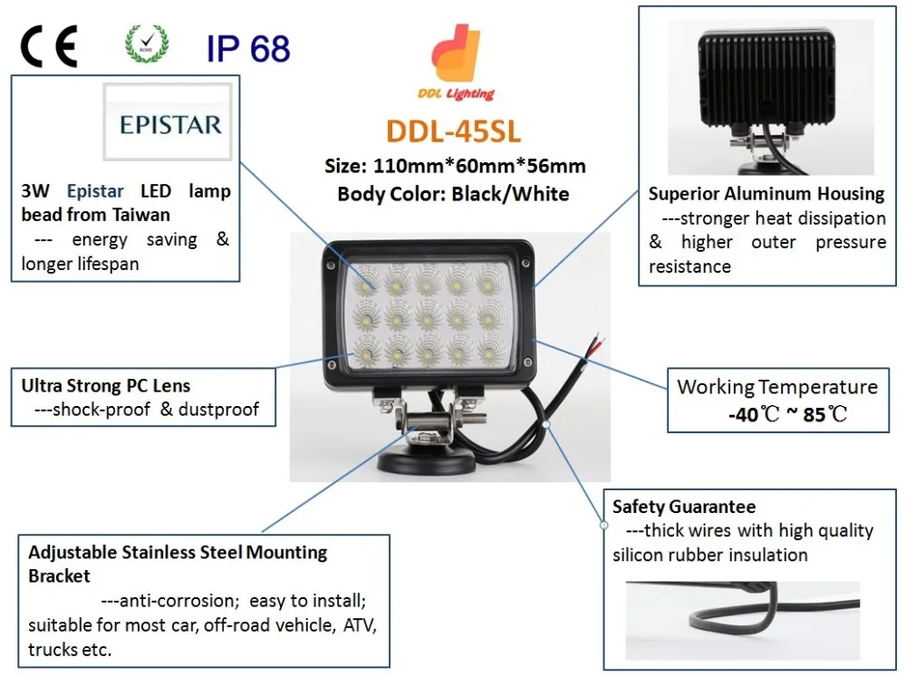 Modle 45S Led Worklight Car Led Spot/flood Light 12v 45W Led Lights for Cars