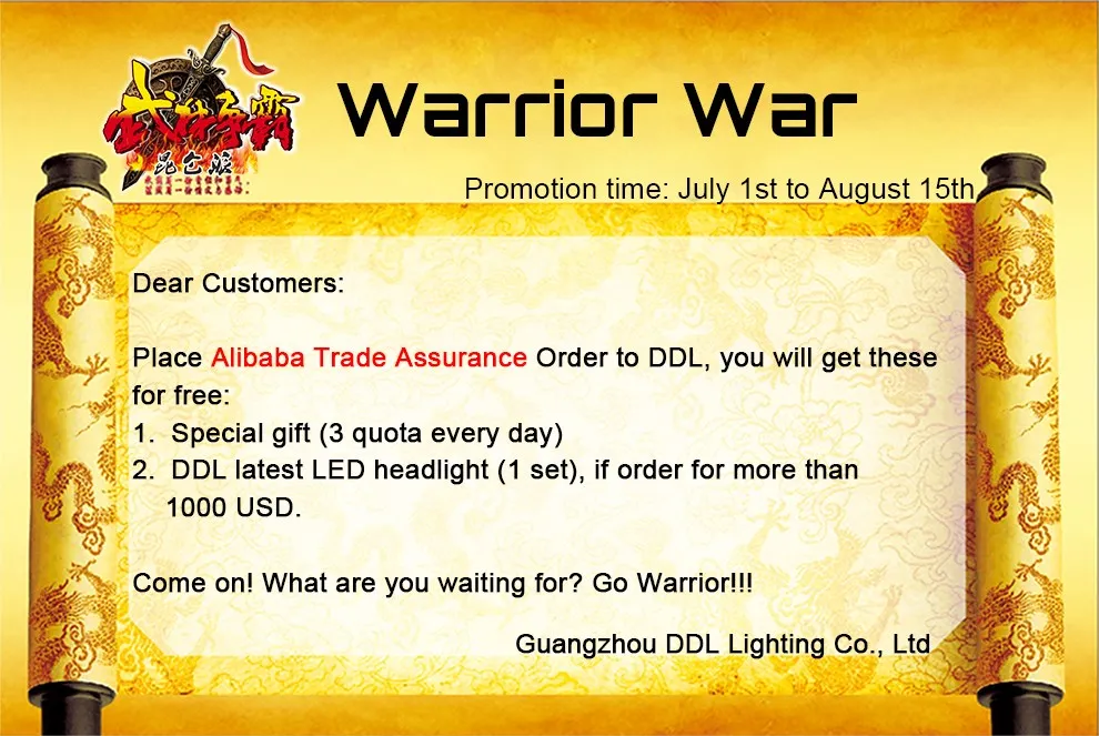 Guangzhou DDL Lighting Co., Ltd was established in 2007, located in Guangzhou, China, currently employs approximately 200 employees. We have specialized in LED&HID automotive lighting( Led light bar, LED headlights, LED work lights, Jeep wrangler LED lights) more than 8 years, having stable cooperation with more than 50 OEM companies from all over the world. In 2015, sales performance comes to RMB 100 million, ranking No.2 in the LED automotive lighting industry. With defective rate less than 0.3%, our products are highly appraise by our clients.