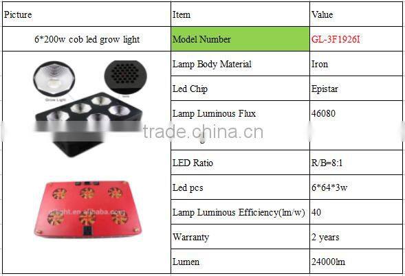 COB LED Grow Light, full specture 1200 watt led grow lights 200X6W Epistar Leds for Hydroponics/Plants Growing&Flowering