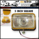 5 Square YELLOW IRON 12V 24V H4/HID Engineering Head Light Halogen Sealed Beam , SEMI-SEALED BEAM