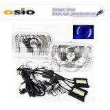 5'S BMC CRYSTAL GLASS WithBLUE HALO RING 12V/24VAuto Halogen Semi Sealed Beam Auto Halogen Lamp Install H4 or HID H4 Xenon Bulb
