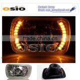 5 Inch Square BMC CRYSTAL GLASS Yellow LED HALO RING 12V/24VAuto Halogen Semi Sealed Beam Auto Halogen Lamp Install H4 or HID