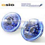 7'R BMC CRYSTAL GLASS With Blue LED HALO RING 12V/24V Auto Halogen Semi Sealed Beam Auto Halogen Lamp Install H4 or HID