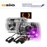 7 Inch Round BMC Semi Sealed Beam With Yllow LED Halo Ring Auto Halogen Sealed Beam H4 or HID H4 Xenon Bulb