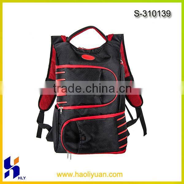 | Features | 1.Full padding on hole bag 2.One laptop compartment with zipper 3.Two front zipper pockets 4.Two front plain opened pockets 5.Two side pockets 6.One ear plug on the ergonomic hiking backpacks . 7.Padded handle |