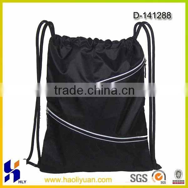 Black Cheap Drawstring Bag With Two Zipper Pocket
