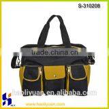 | Features | one main compartment with zipper closure;front with two velcro closure pockets;side mesh pocketinside with six slip poekcts;long strong handle |