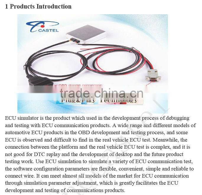 - Use our ECU simulation to simulate a variety of ECU communication test, the software configuration parameters are flexible, convenient, simple and reliable to connect wire.