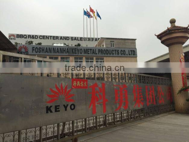 Keyo Metal Products Co.,Ltd is a professional manufacturer of BBQ and BBQ tools more than 8 years,located in Guangdong, Foshan city.Our products exported to many countries and super market in Europe,Usa,Middle east,Australia and South America etc. Our factory consists of 7 workshops for pressing, punching, painting, enameling, packaging, welding and molding. These workshops are equipped with up-to-date machines and equipment, capable of marking various styles of BBQ products, handling middle and large scale product processing, including steel roll sheet flattening and cutting, electroplating, powder coating and painting as well as deep-drawing. Our goal of developing business and service with our customers is built upon the principle of "Top Quality First, Reasonable Price and Prompt Delivery".We expect your visit and guidance.