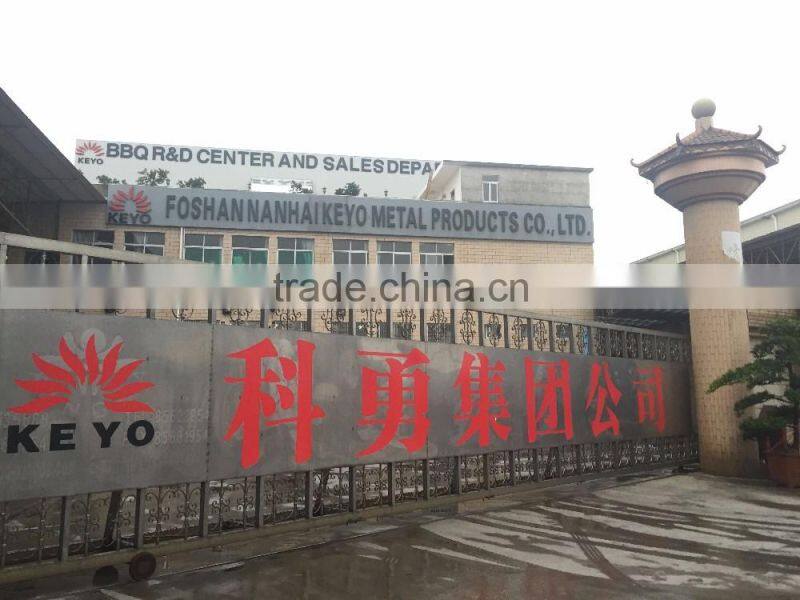 Keyo Metal Products Co.,Ltd is a professional manufacturer of BBQ and BBQ tools more than 8 years,located in Guangdong, Foshan city.Our products exported to many countries and super market in Europe,Usa,Middle east,Australia and South America etc. Our factory consists of 7 workshops for pressing, punching, painting, enameling, packaging, welding and molding. These workshops are equipped with up-to-date machines and equipment, capable of marking various styles of BBQ products, handling middle and large scale product processing, including steel roll sheet flattening and cutting, electroplating, powder coating and painting as well as deep-drawing. Our goal of developing business and service with our customers is built upon the principle of "Top Quality First, Reasonable Price and Prompt Delivery".We expect your visit and guidance.