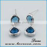 2016 Fashion Bling Jewelry Blue Simulated Glass Fancy Earrings For Party Girls