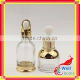 Shoulder Glass Dropper Beard Balm Bottle Gold Silver Lid GSB-0011R
