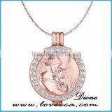 New Design Creative Crystal Insert Love Coin Locket Necklace