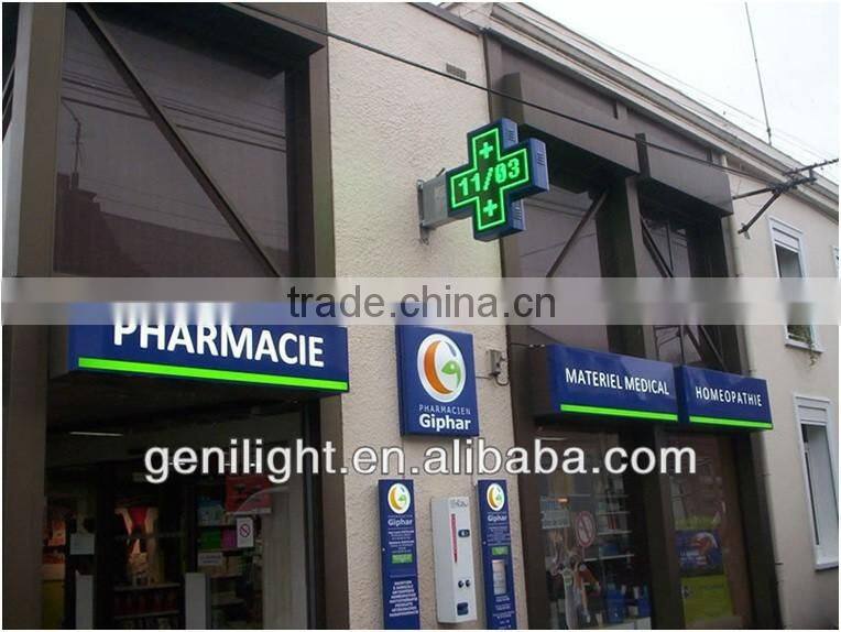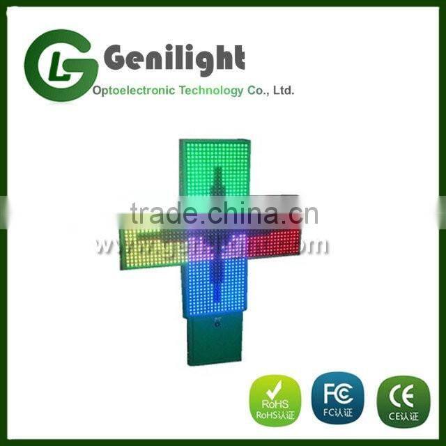 P10 Pixels and Video Function Outdoor Green Led Pharmacy Cross Display Sign for Business