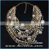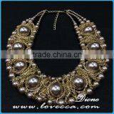 Dubai Gold Jewelry Charms Fashion Women Exaggerate Pearl Collar Chain Costume Necklace