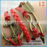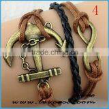 Hot Cheap Good Quality Colorful Multilayer Men Teen Anchor Love Leather Bracelet