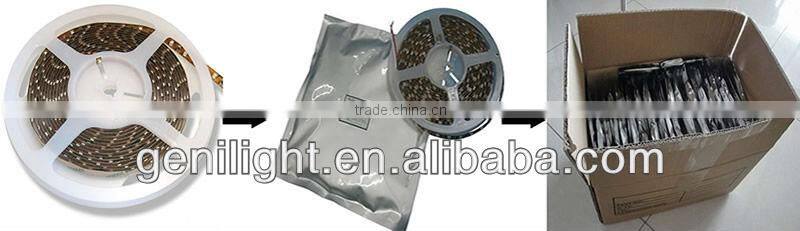LED strip adopt high brightness LEDs as light source and high quality flexible PCB, every 3-LED is a group, can be cut and connectted. Outer adopt high quality materials as waterproof cover, it can prevent UV, water and dust, firmed by back adhesive 3M tape, The avalibale colors are red, green, blue, yellow, white, warm white. RGB. Widely used for architechtural decoration lightings, sign lightings and so on.