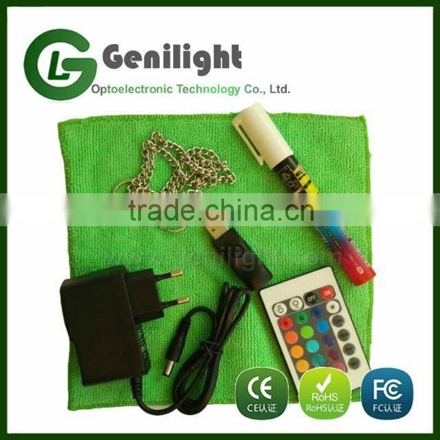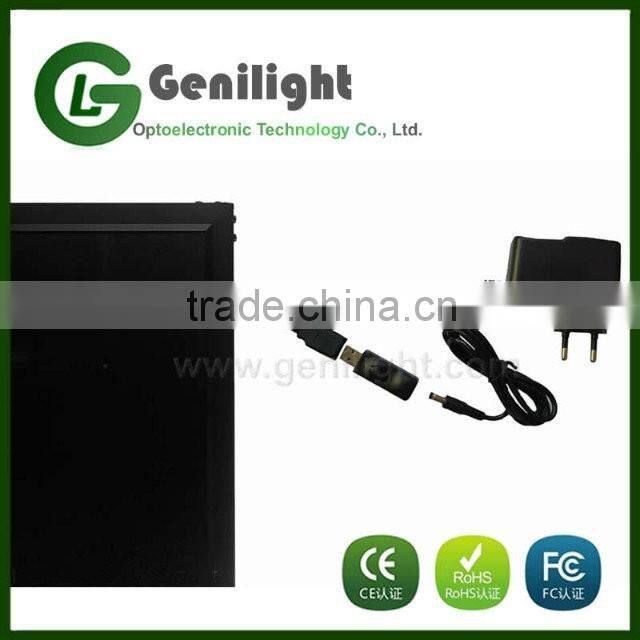 Free accesssories: power adapter+hanging chain+ fluorescent pen+cloth+infrared remote controller+USB controller,1 piece of each