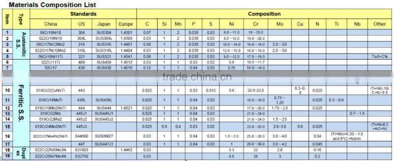 Ferritic stainless steel pipe 409/430/439/441/443/436L/444/445J1/445J2/445J3/S44660/447