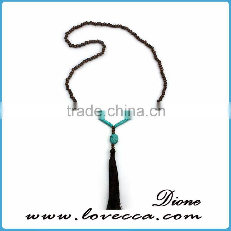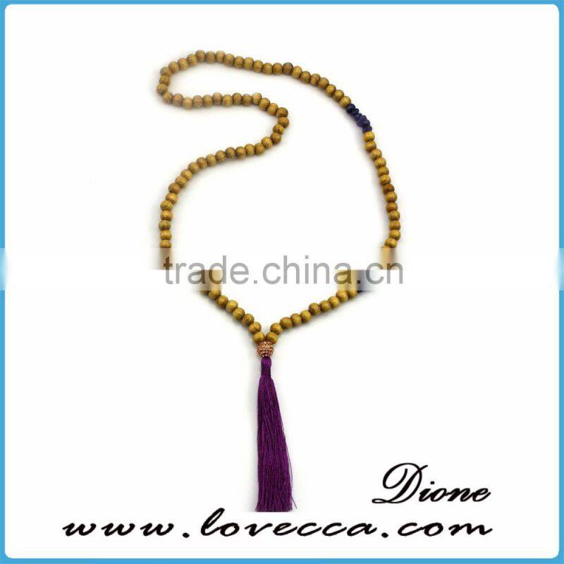 Hot sale handmade wooden multicolor gemstone necklaces pendant for lady