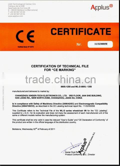Changzhou Xinder-Tech Electronics (original Xinder Electronics) was established in year of 2002, and specializes in designing, manufacturing and selling wheelchair ramps, wheelchair lifts, electric step, manual steps, turning seats, wheelchair toppers, wheelchair restraint systems, seat fixing systems, manual driving systems, electronic accelerator pedals and other disabled products.
