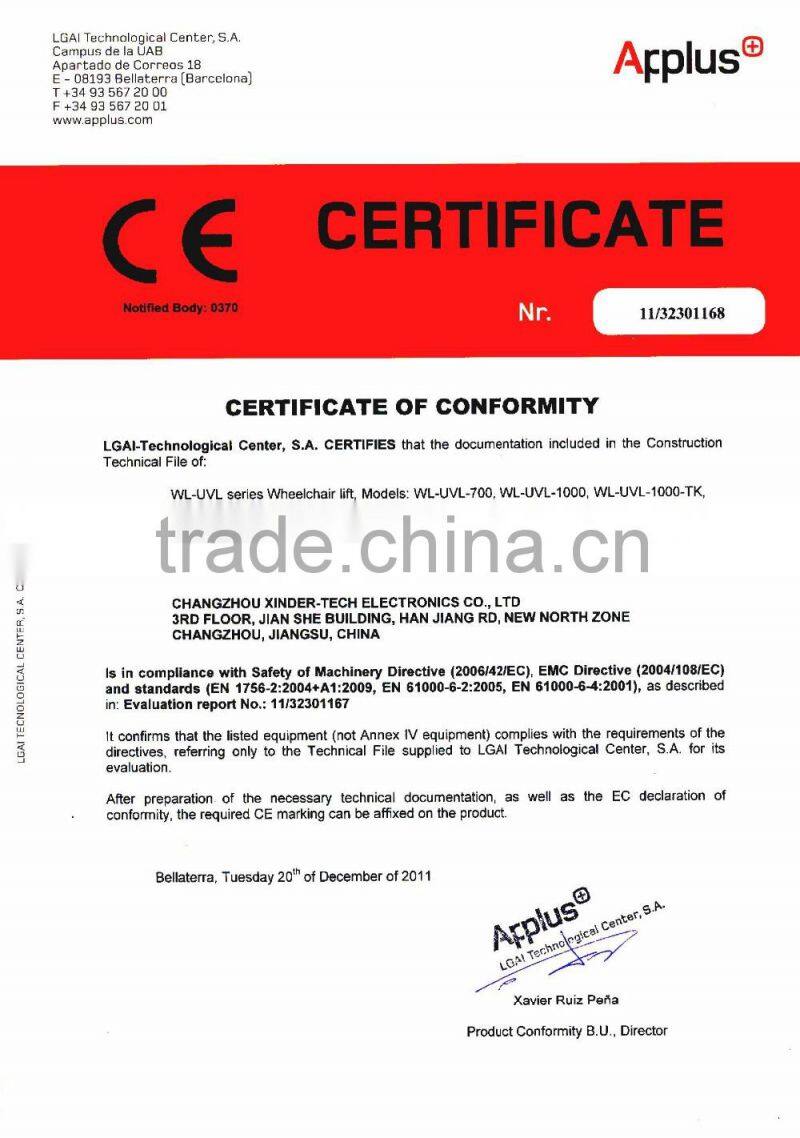 Meanwhile, our products has been exported to nearly 40 countries, such as France, Italy, New Zealand, Mexico, Finland, Brazil, Poland, Costa Rica, Korea, Australia, Malaysia, Bulgaria, Turkey, Israel, Philippines, Iran, India, South Africa and so on. There are over 500 sets of wheelchair lifts used for South America, and over 200 sets of wheelchair lifts exported to Mexico.