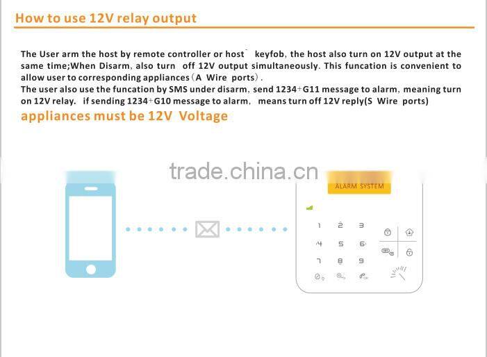 Customized Zone Name Freely, Compatible to CID Protocol Alarm Gsm Camera Wired Zone Relay Output via SMS