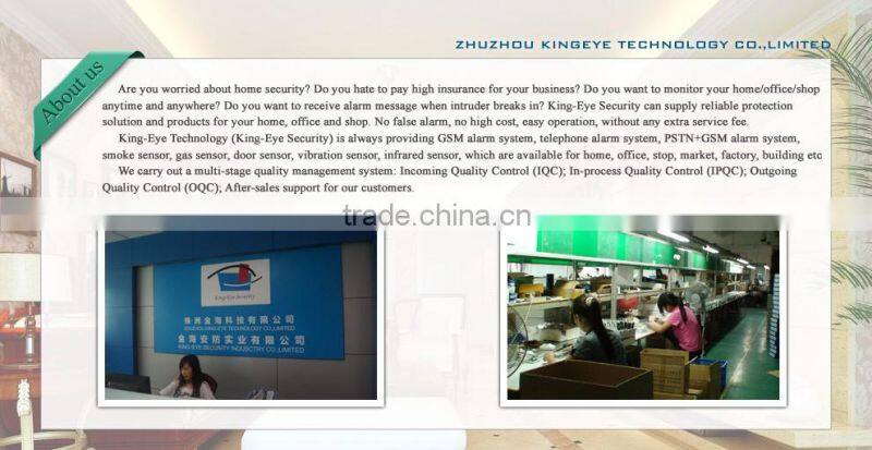 King-EYE Technology(King-eye security) is always providing GSM alarm system,burglar alarm,wireless alarm system,security alarm system,duto dial alarm,home alarm system,fire alarm system,door sensor,window sensor,smoke sensor.etc.