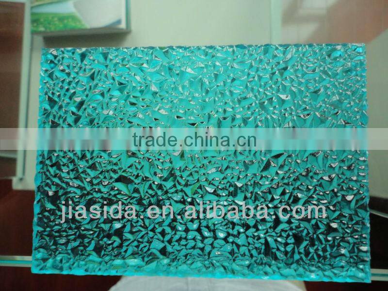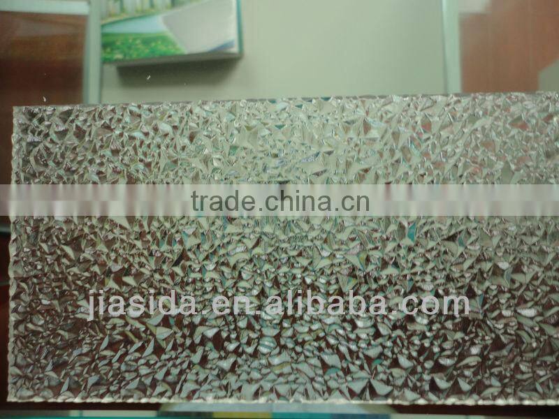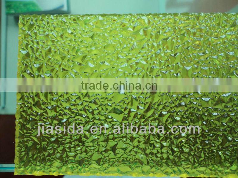 Jiasida embossed sheet is a branch of polycarbonate solid sheet. It applies to indoor installation,indoor parition,advertising industry and mechanial manufacturing industry because of special particle appearane of prism or frosted glass. Jiasida embossed sheet has features of solid sheet:less weight,impact resistance,high light transmission and various colors.