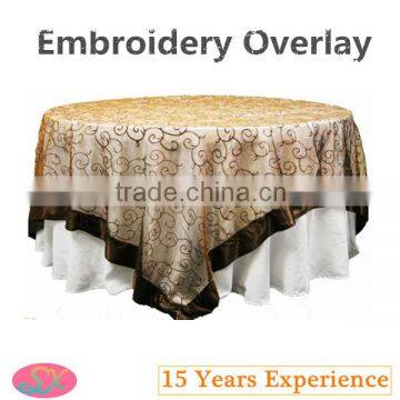 100%Polyester Scroll Embroidered Organdy Table Overlay For Hotel/Banquet/Wedding/Party